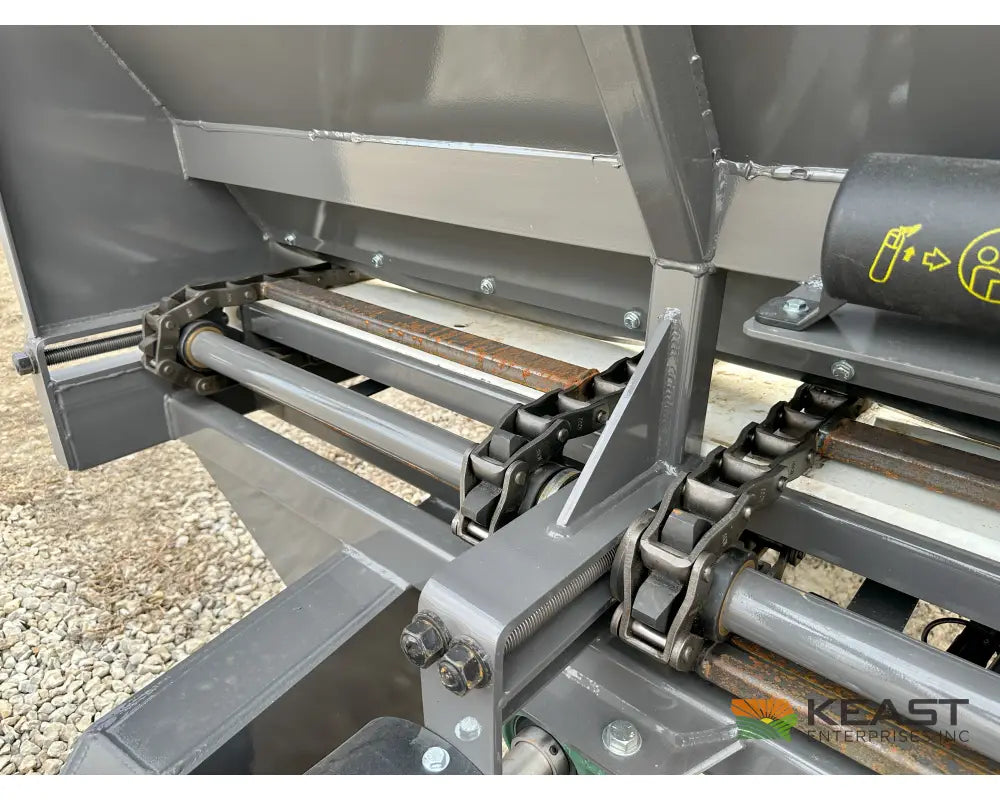 Heavy-duty vertical beaters with 3/8″ flighting spread material smoothly, backed by a 88C chain floor that provides consistent flow.