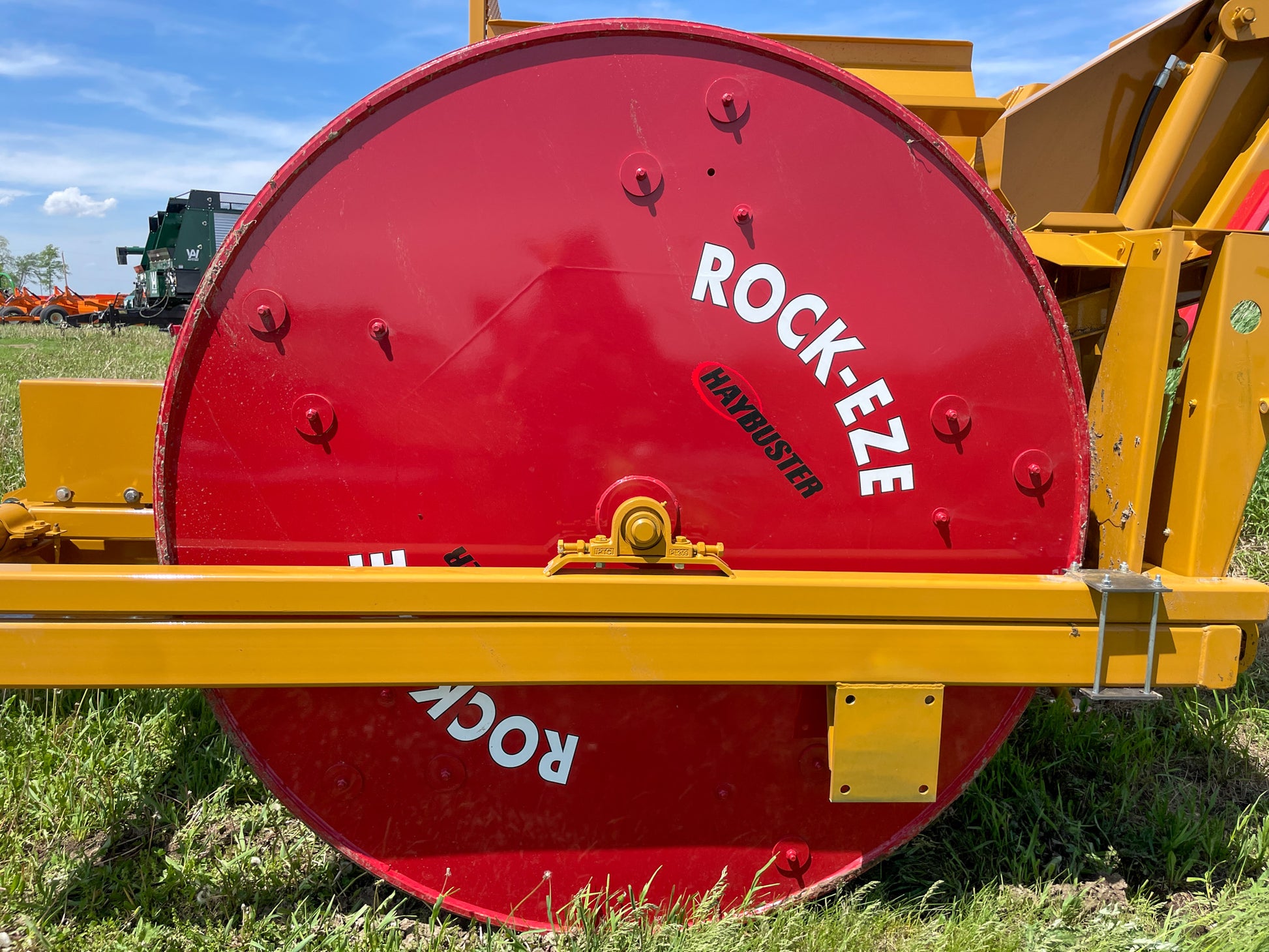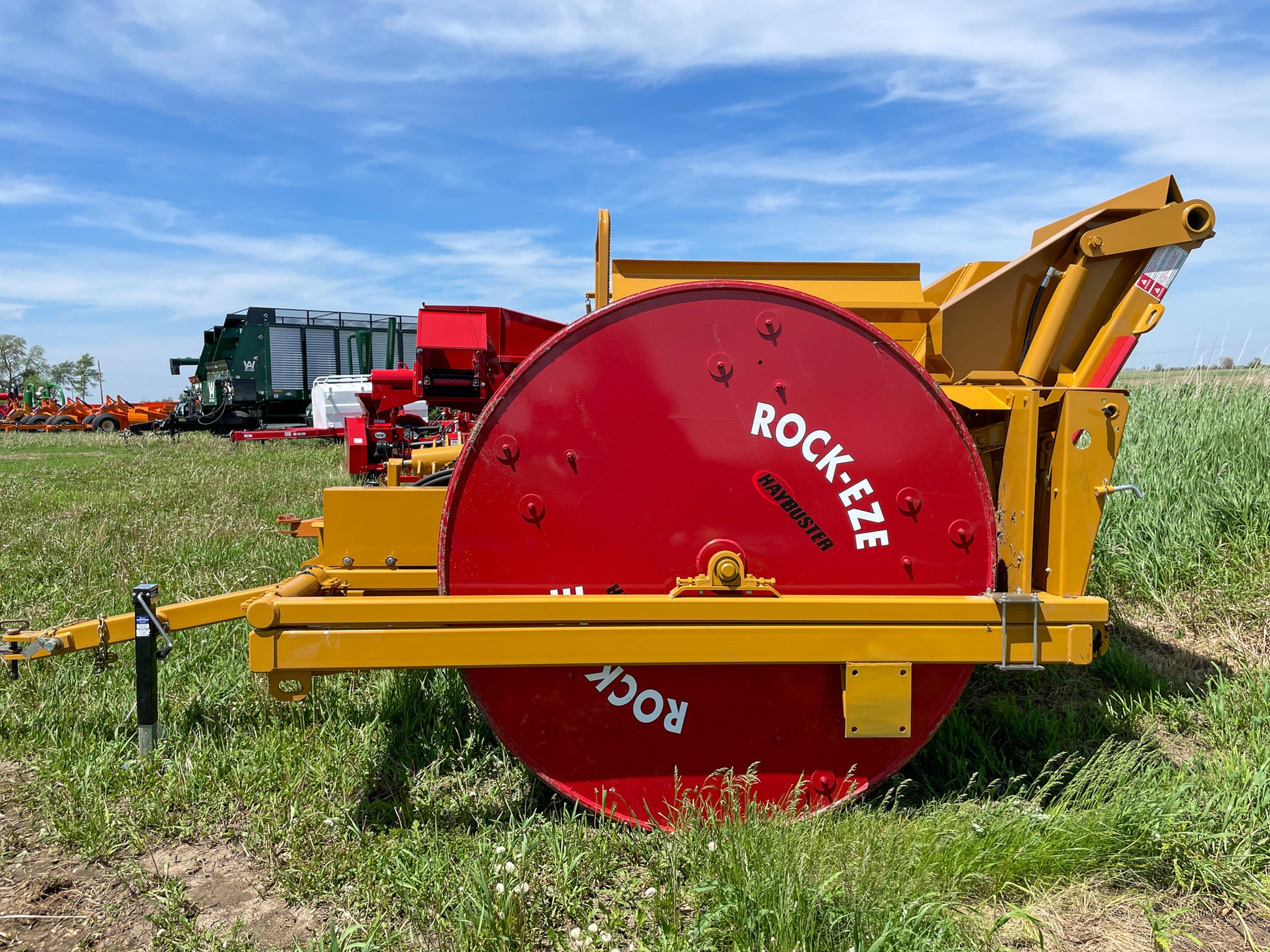 The Haybuster 3106 Rock-EZE Rock Picker combines rock rock picking and windrowing into a smooth, single-pass operation. It clears a 10′ swath and handles rocks from 2″ to 15″ in diameter. The 1 cubic yard hopper dumps material at 80″, with a heavy duty hydraulic windrower and rock wheel deliver field-ready performance with minimal effort.