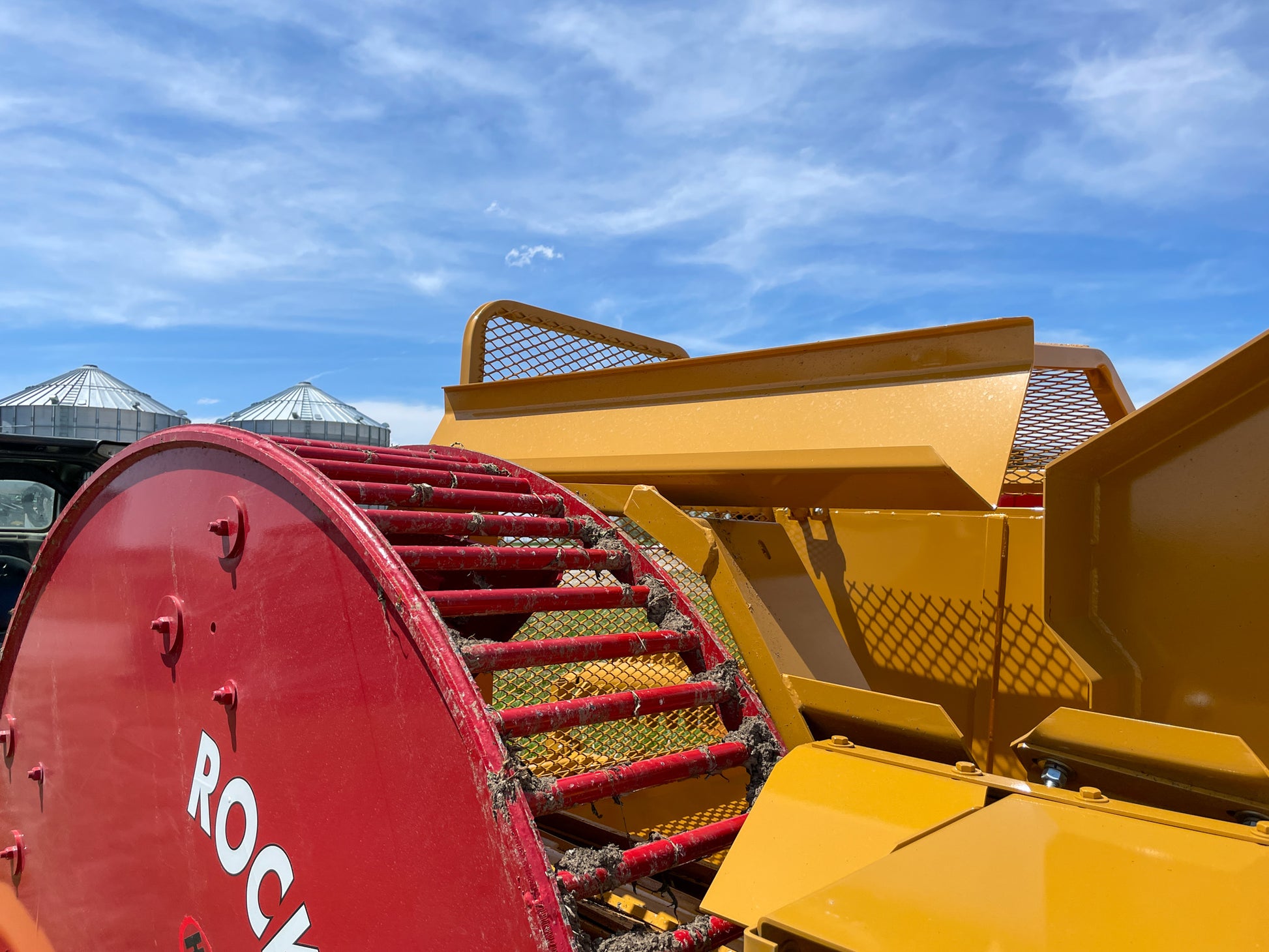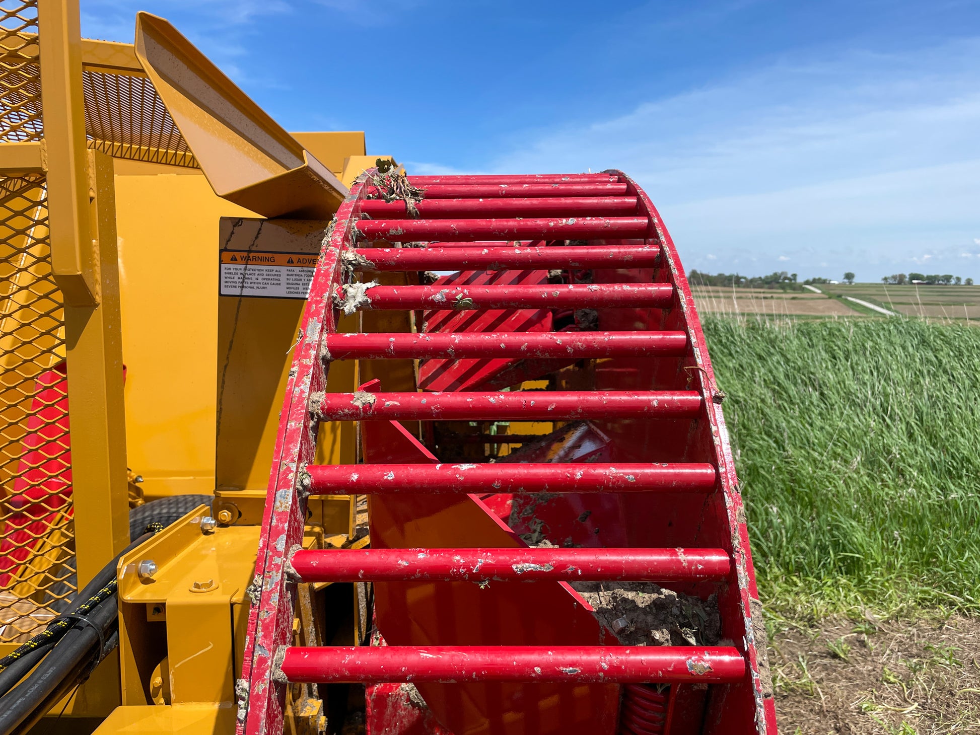 Ground-Driven Rock Wheel and Kicker: Gently lifts rocks and evenly distributes them into the hopper via a rotating wheel