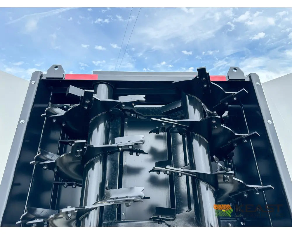 Twin Vertical-Beaters: 30″ beaters with spiral flighting break up and distribute material easily.